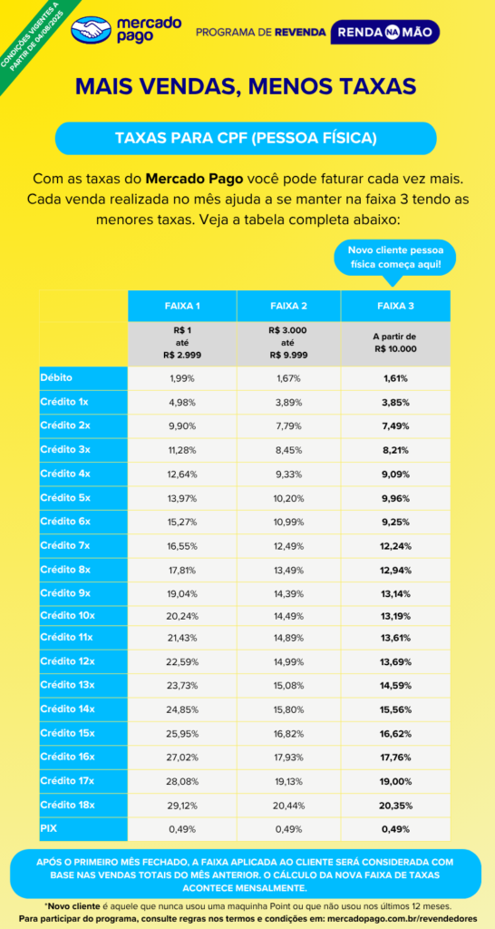 Taxas para quem nunca usou o Mercado Pago ou que não vende à 12 meses com Point.